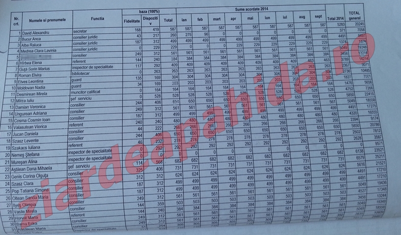 Ziardeapahida.ro vă prezintă, în exclusivitate, într-un prim episod, prima pagină din tabelul cu angajații Primăriei Apahida care au beneficiat de sporuri ilegale.