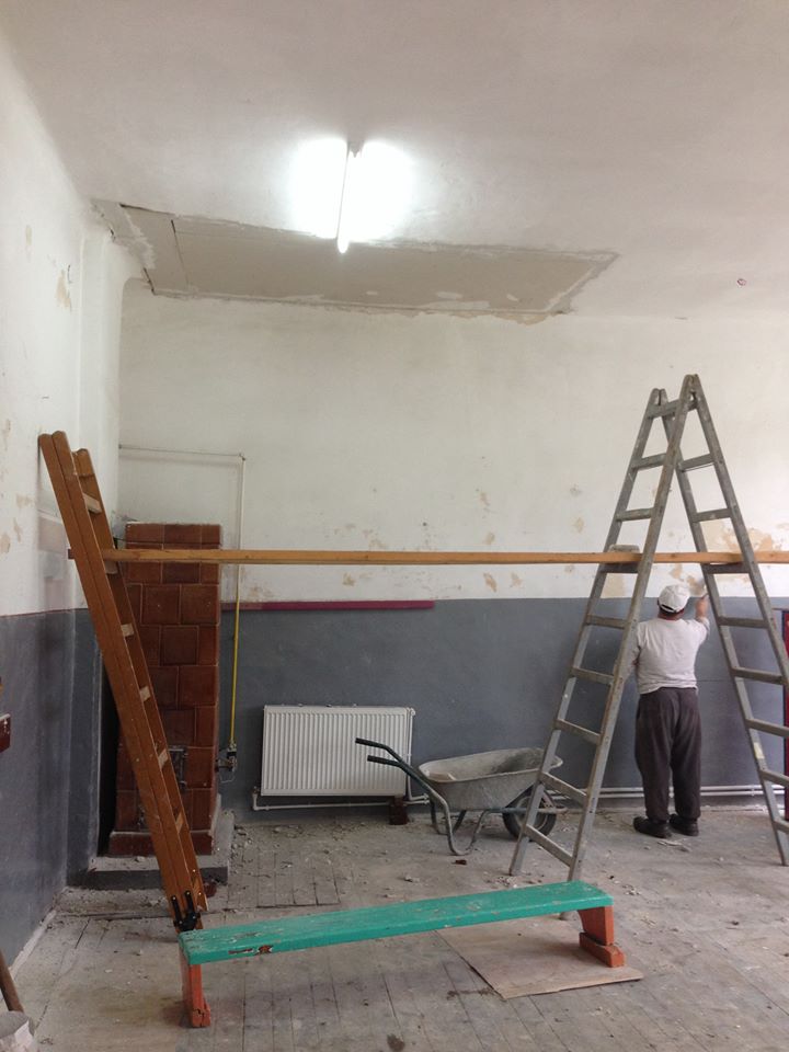 La scurt timp după ce muncitorii Primăriei Apahida au reparat tavanul sălii de sport de la Școala din Dezmir, care a căzut din cauza infiltrațiilor apei de ploaie, o altă bucată de tencuială s-a desprins și s-a prăbușit.
