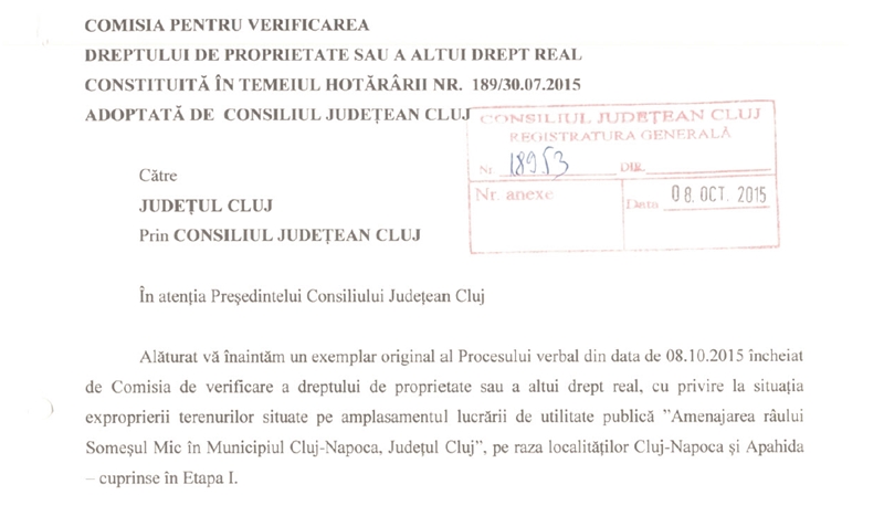 Decizia de a oprit orice demersuri până la reglementarea situației a fost luată la ședința de joi a Comisiei de Expropriere care s-a derulat la sediul Primăriei Apahida. În procesul verbal, care poartă ștampila de înregistrare a Consiliului Județean Cluj, se arată că cel care a sesizat neregula a fost viceprimarul din Apahida, Radu Păcurar. ”Domnul viceprimar Radu Păcurar subliniază că potrivit PUG-ului comunei Apahida, din 2005, aprobat prin HCL 20/31 mai 2005, unele parcele din zona expropriată sunt considerate ca fiind teren intravilan, și nu extravilan, așa cum sunt încadrate potrivit raportului de evaluare”, se arată în procesul verbal.