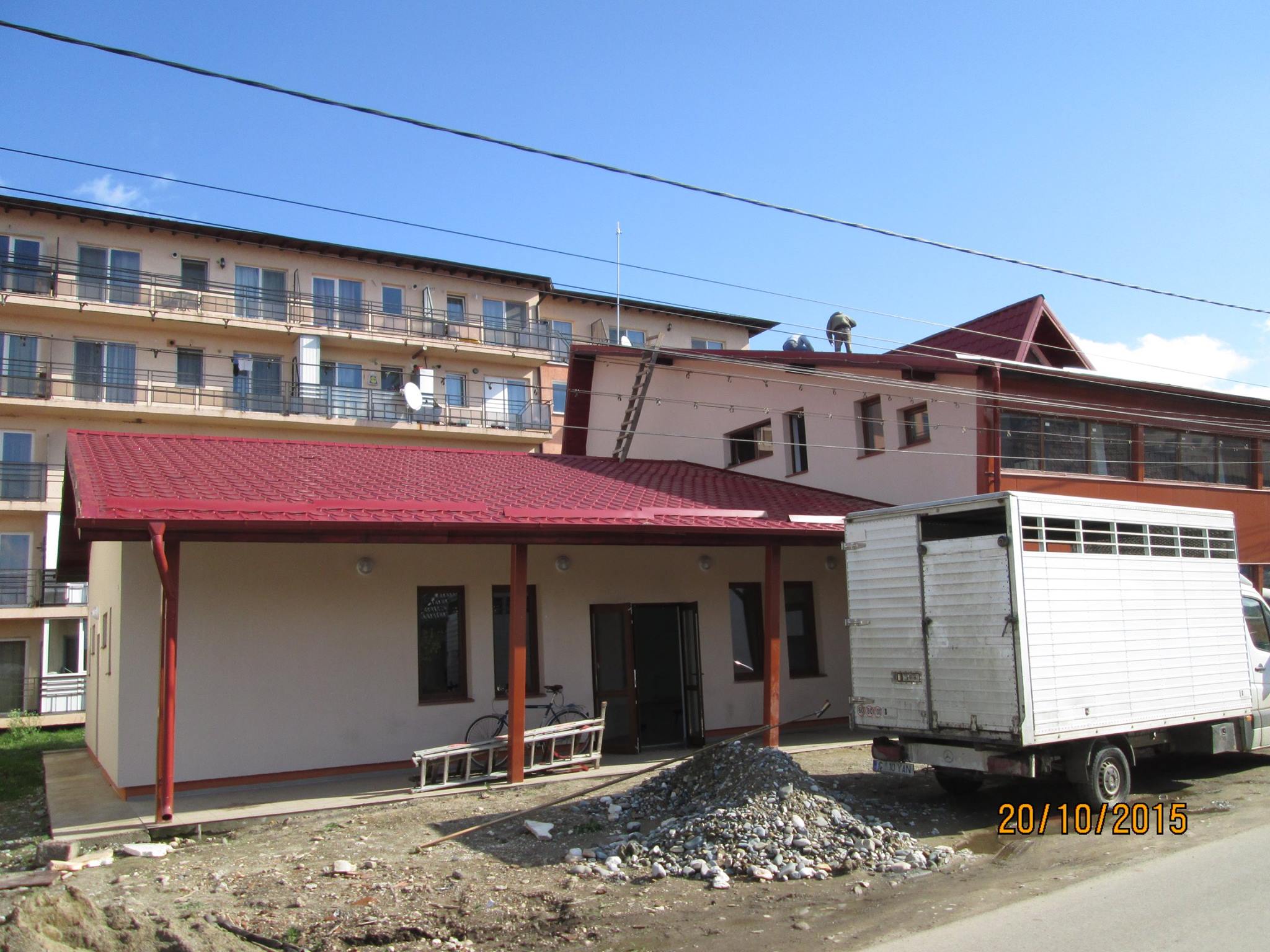 În timpul vizitei, muncitorii lucrau de zor la repararea acoperișului, mai multe table fiind îndoite. ”Ca o părere, din nou personală, materialele sunt de slabă calitate, probabil ce a fost mai ieftin pe piață, lucru de înțeles deoarece criteriul de bază de selecție al firmelor prezente la licitație, este prețul cel mai scăzut. Scena e făcută din bucăți de scândură, de fapt resturi, prost finisată, balustradele sunt foarte urâte, nu cred că am văzut așa urâte pe undeva, finisate din topor, fără mână curentă din lemn, doar o țeavă prost vopsită. Deși clădirea este recent finalizată, deja plouă în ea, lucru de neînțeles, având în vedere că acoperișul este unul simplu. Totuși, muncitorii au fost chemați și executau reparațiile … Am mai văzut mici fisuri, o infiltrație la tavan, un parchet pus strâmb”, a comentat viceprimarul Radu Păcurar.