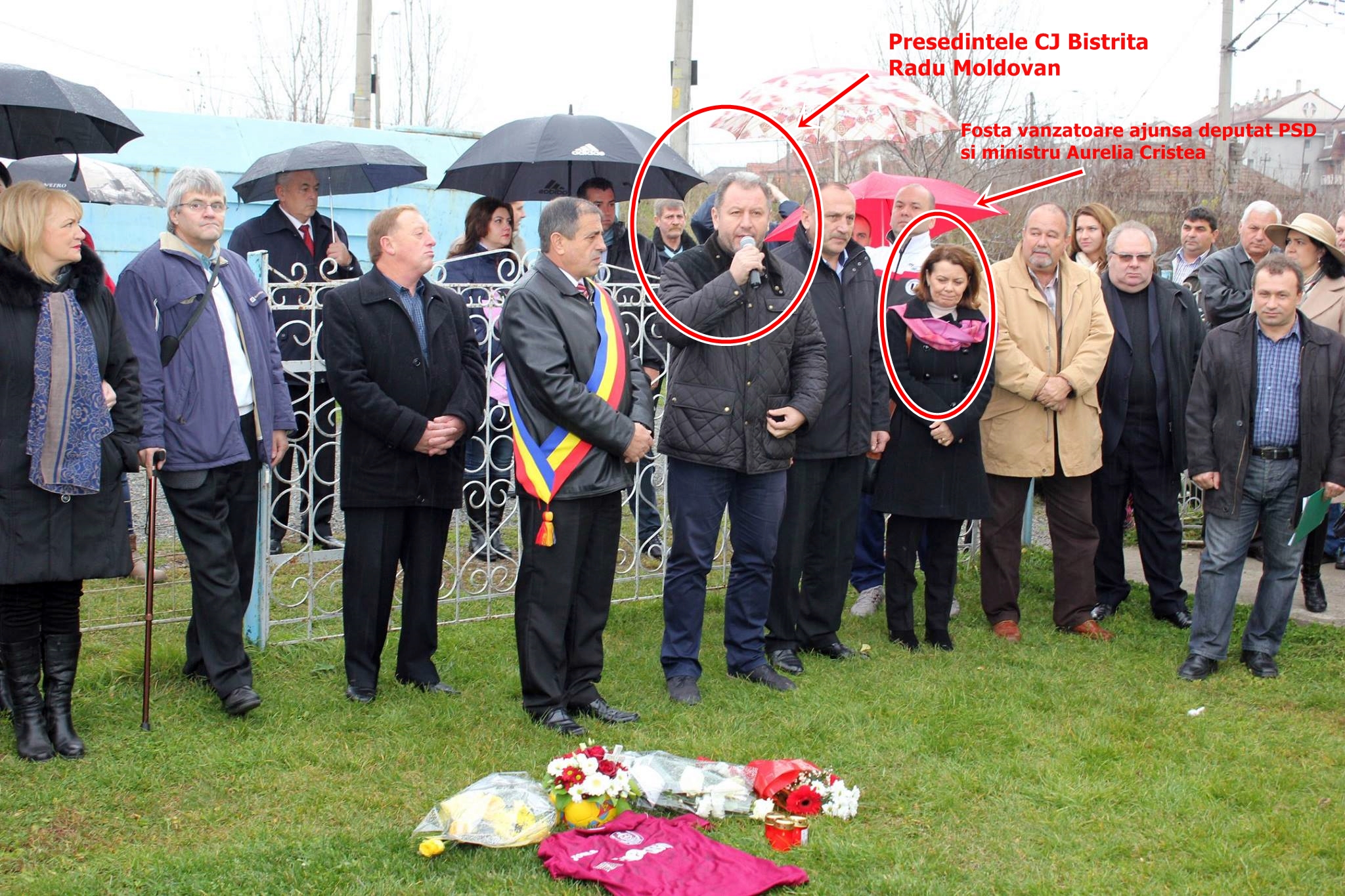 În loc ca Primăria Apahida să anunțe evenimentul și, astfel, amatorii de fotbal să fie prezenți, pe stadion, pe lângă cele două echipe de seniori, componenții echipelor de fotbal de pe vremea lui Vasile Moga, au fost prezenți doar lideri politici PSD, între care deputatul Aurelia Cristea, fostă vânzătoare la magazinul de vopsele din Huedin, care s-a remarcat în Parlament, prin promovarea legii anti-fumat, uitând complet de spitalul regional de urgență care trebuia construit la Câmpenești și apoi la Florești, sau de către președintele Consiliului Județean Bistrița Năsăud, PSD-istul Radu Moldovan. Numele acestuia a fost pomenit în dosarul de corupție al polițiștilor care au condus Inspectoratul de Poliție al Județului Bistrița Năsăud, arestați vreme de șapte luni pentru corupție.