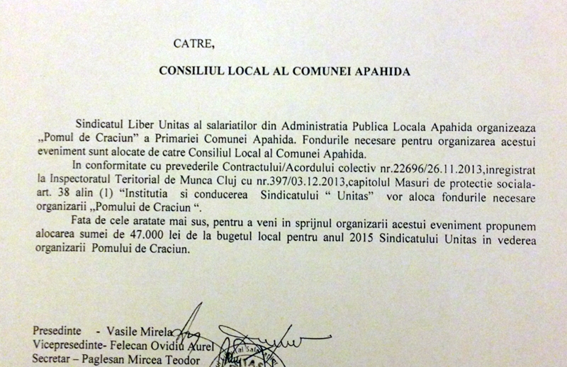 La Apahida, angajații Primăriei au toate drepturile din lume!!! Acum vor și prime de Crăciun! Suma cerută este mai mare decât cea alocată celor peste 800 de elevi care învață la Liceul Ștefan Pascu