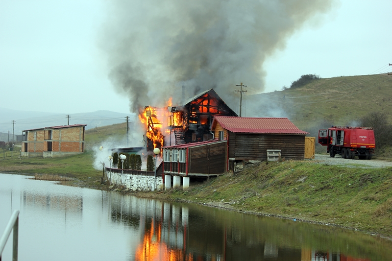 Cabana lui Tibi Borsoș din Câmpenești s-a făcut scrum. Poliția așteaptă concluziile pompierilor pentru a începe o anchetă. VIDEO