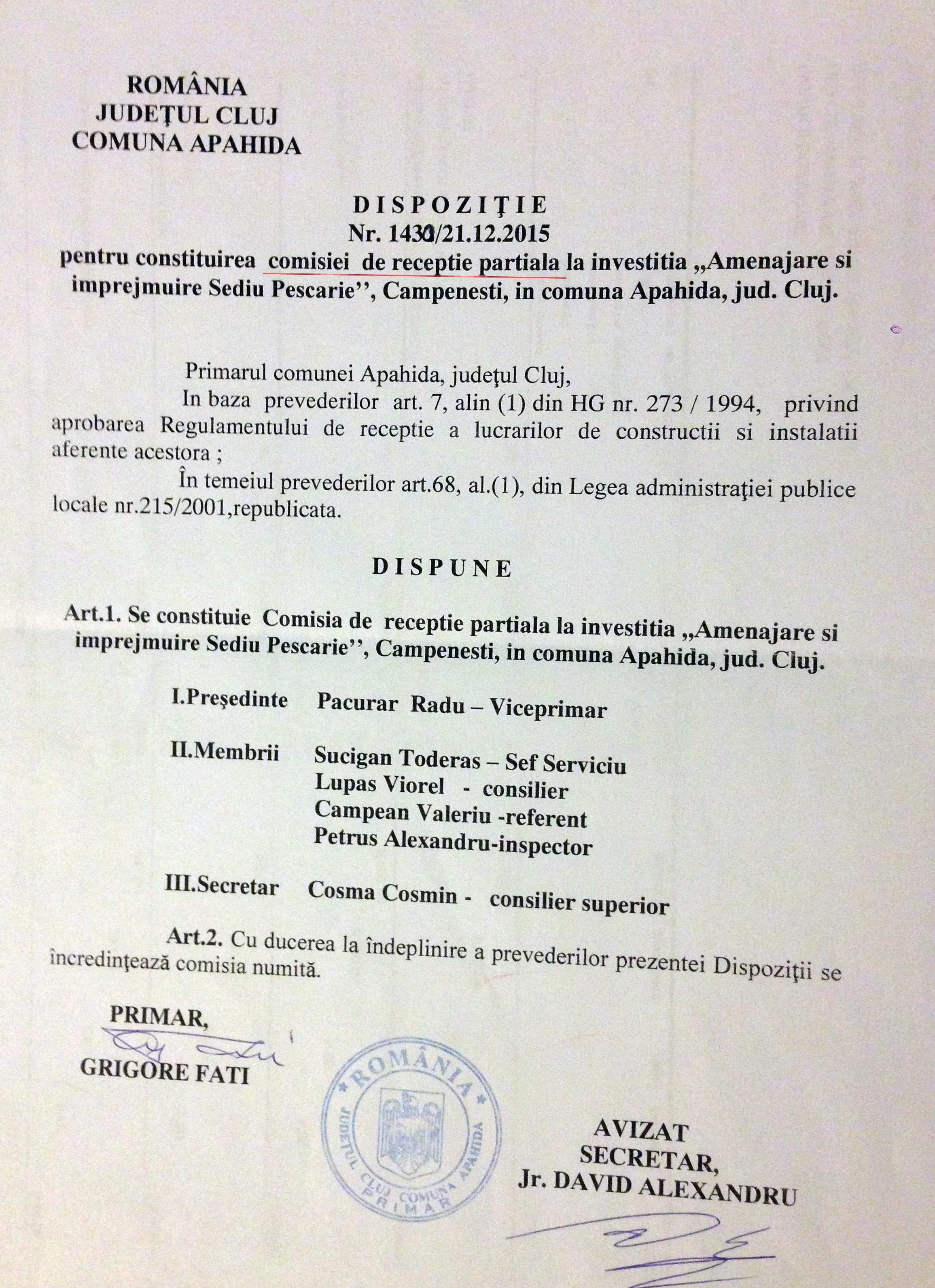 Cum se sifonează banii publici la Primăria Apahida. A fost plătită ilegal suma de 78.000 de lei pentru lucrările de la Pescăria din Câmpenești