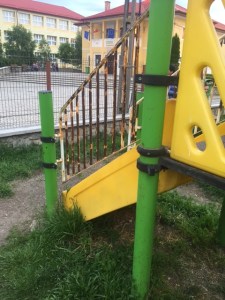 O educatoare din Apahida a încercat să facă primăvară cu o floare. Locul de joacă de la Grădinița din Apahida este ruginit la propriu