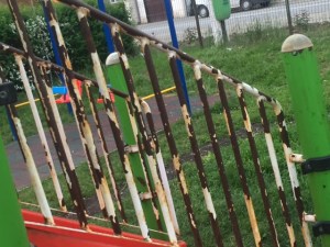 O educatoare din Apahida a încercat să facă primăvară cu o floare. Locul de joacă de la Grădinița din Apahida este ruginit la propriu