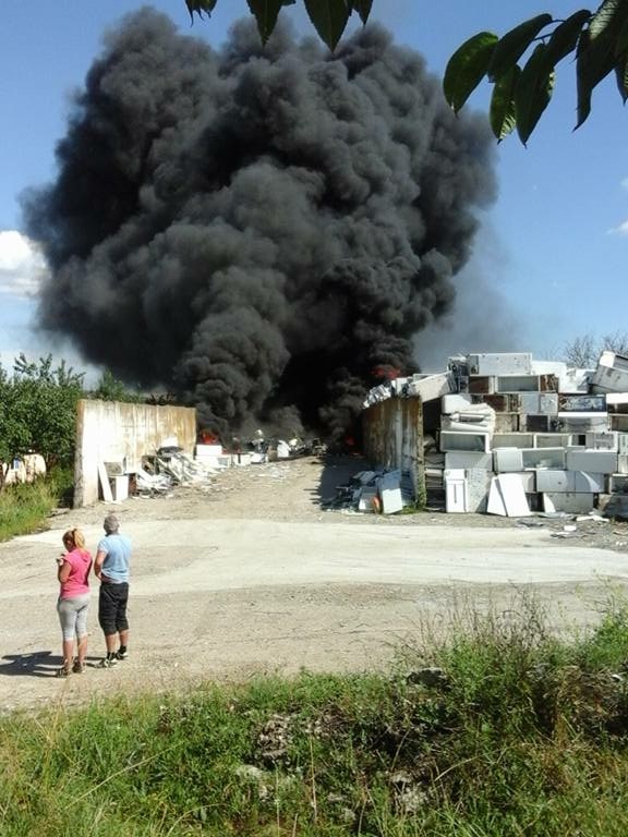 O hala aparținând unei firme private, in care se aflau depozitate deșeuri plastice si produse electrice scoase din uz, a luat fost in aceasta dupa amiaza. Fumul gros se vede la câțiva kilometri depărtare.