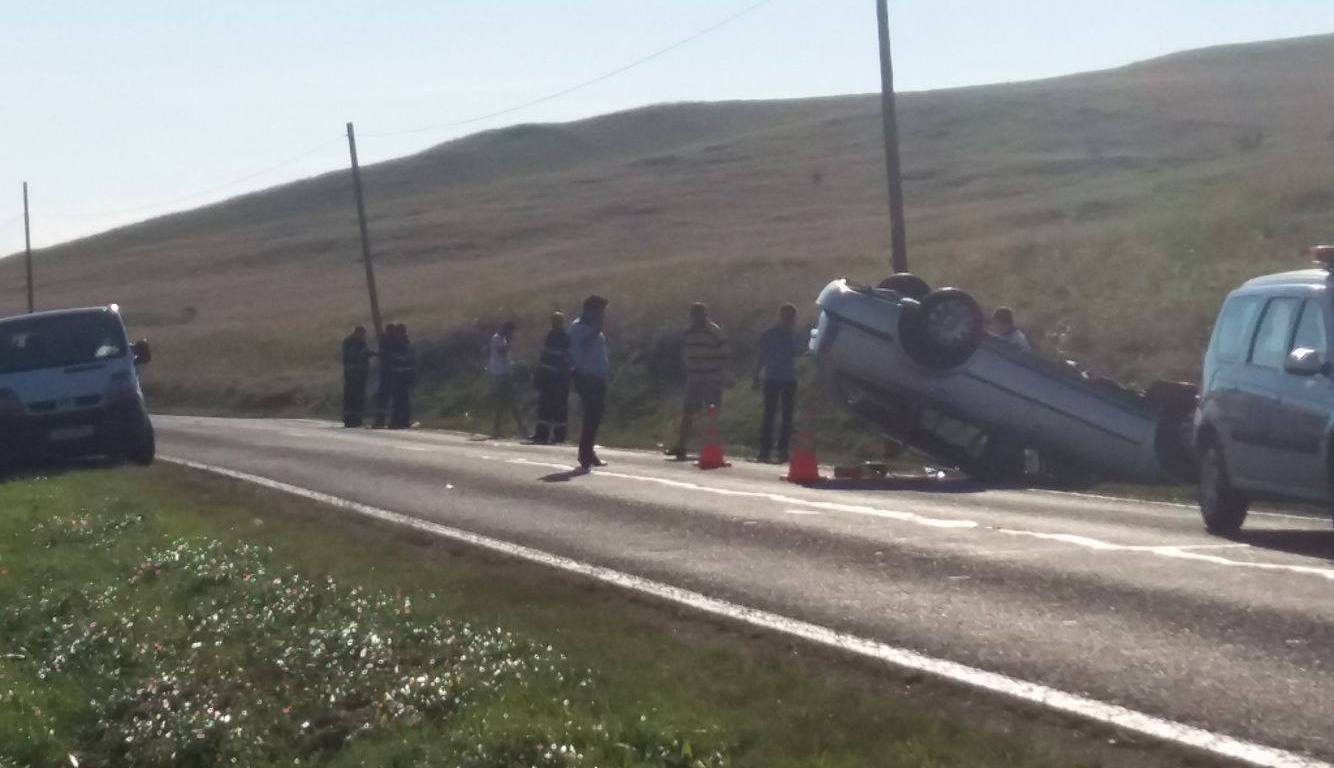 Din primele informații, un autoturism Opel, a vrut să depășească o dubă, dar din cauza faptului că din sens opus circula, regulamentar un alt autoturism, șoferul a intrat în panică, a ieșit în decor și s-a răsturnat.