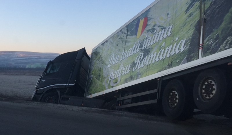Accident la Dezmir! Un TIR a ieșit de pe drum