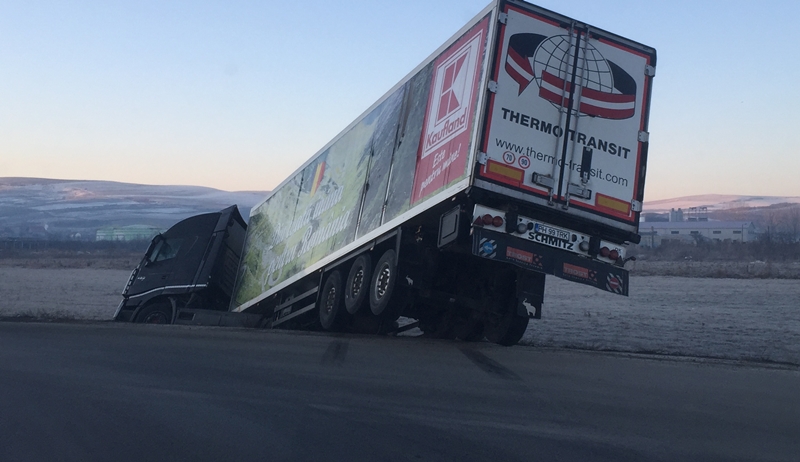 Accident la Dezmir! Un TIR a ieșit de pe drum