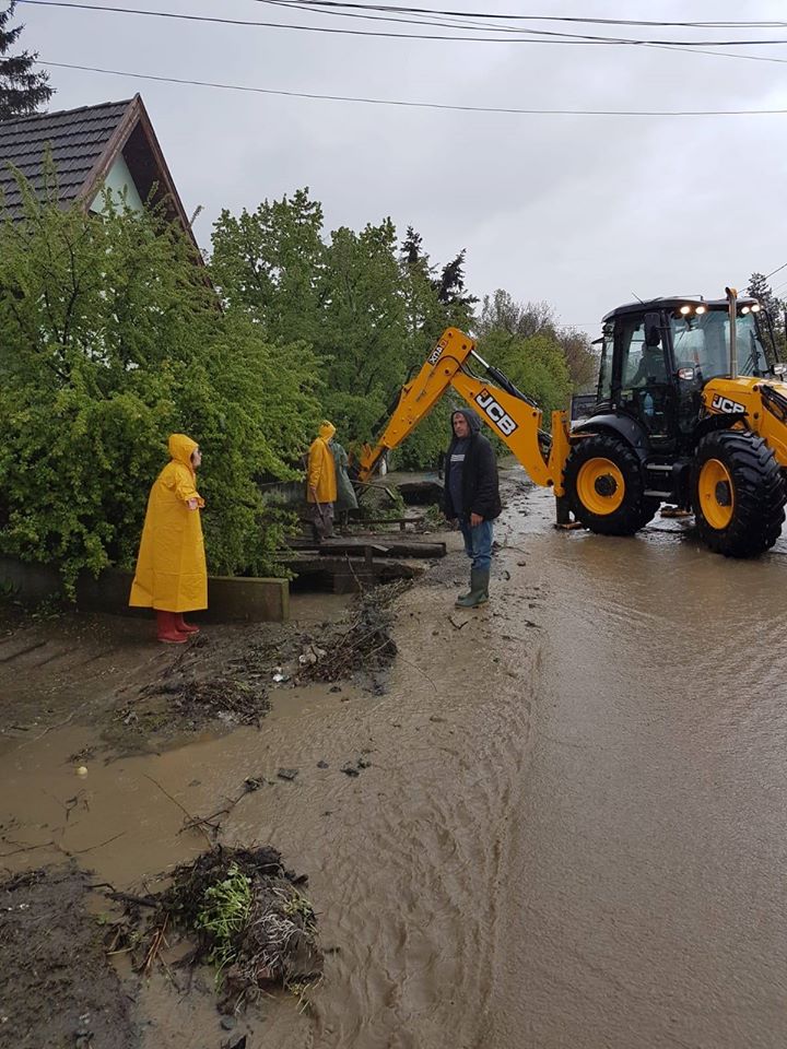 Ploaia abundentă a produs pagube la Dezmir. Toate utilajele Primăriei Apahida sunt la fața locului!