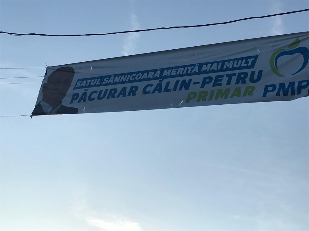 În urmă cu o zi, în localitatea Sânnicoară a fost montat un banner electoral al Partidului Mișcarea Populară, unde apare fotografia lui Călin Păcurar, fostul șef al PNL Apahida, care va candida pentru funcția de primar al comunei Apahida, din partea acestui partid.