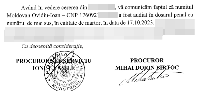 Ziar de Apahida a aflat că dosarul penal are numărul 103/P/2023, și se referă la fapte de luare de mită.