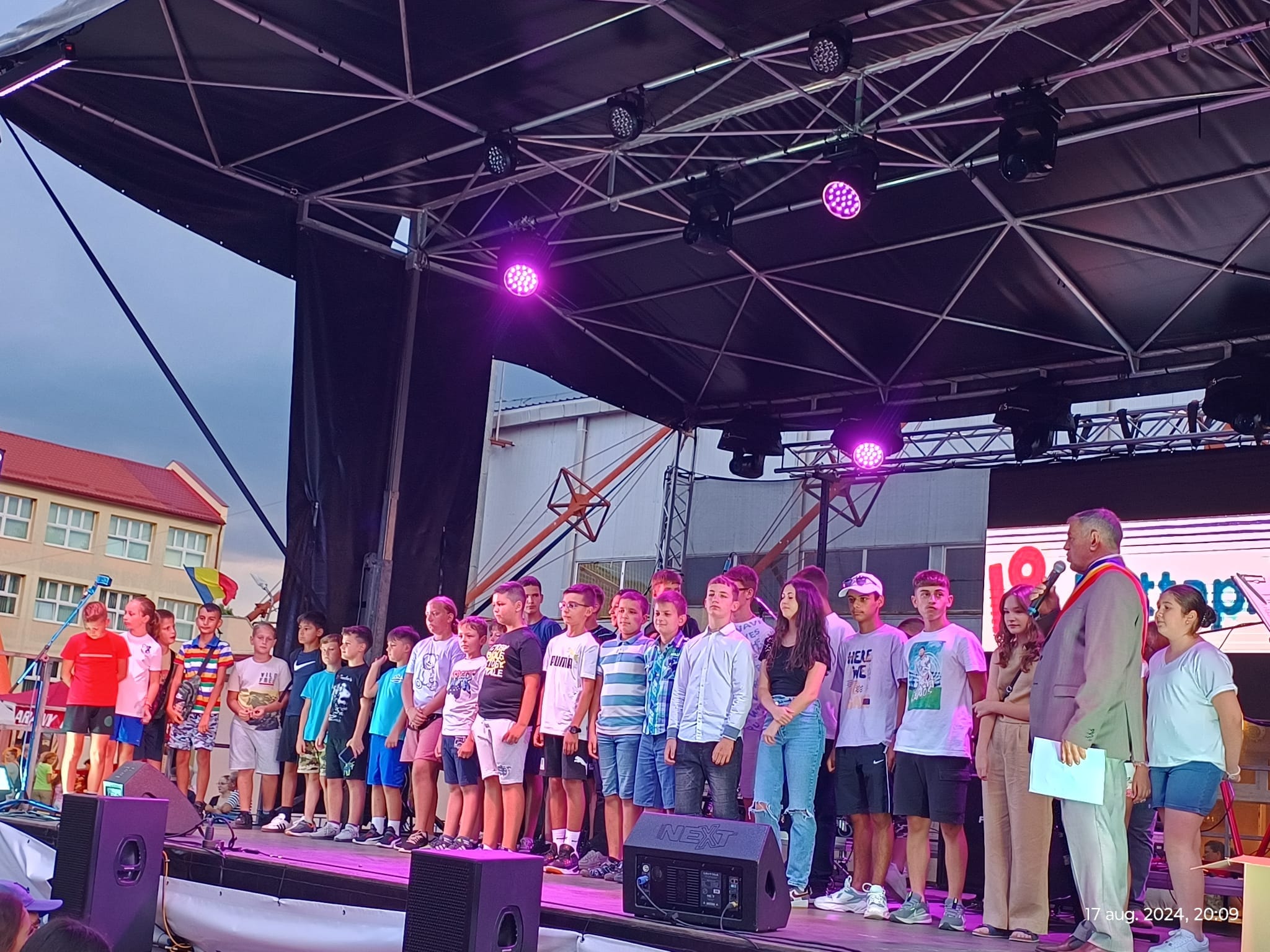 Primarul comunei, Grigore Fati a urcat pe scenă și a acordat premiile elevilor merituoși în aplauzele celor câteva sute de participanți la festival.