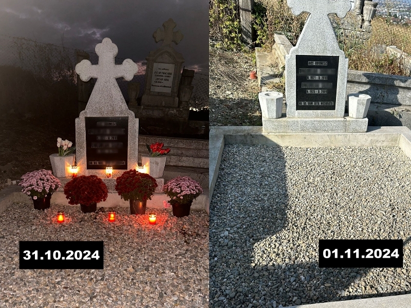 Omul a mers la cimitir în seara zilei de vineri, când a avut loc Luminația. Apoi, a revenit și sâmbătă, dar florile și candelele dispăruseră.