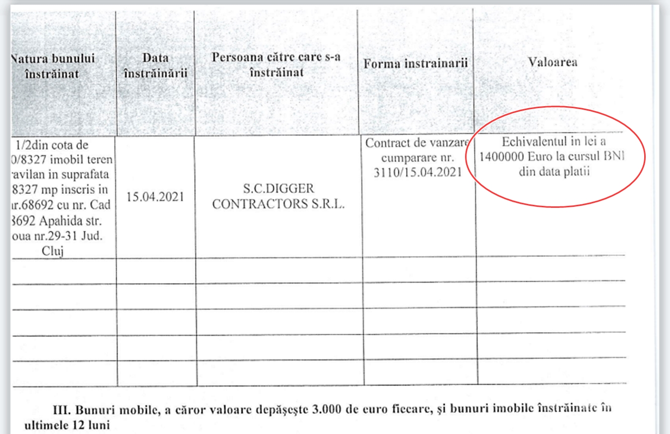 De exemplu în declarație de avere pentru anul 2021, secretarul David a scris că a vândut la data de 15.04.2021, către Digger Constructors SRL, un proiect imobiliar pentru suma de 1.4 milioane euro. Din această sumă, jumătate au intrat în conturile lui David, acesta fiind proprietar în cotă de 1/2 din terenul din Apahida, situat pe strada Nouă, unde au fost construite mai multe blocuri.