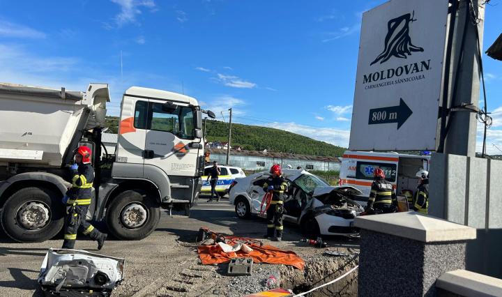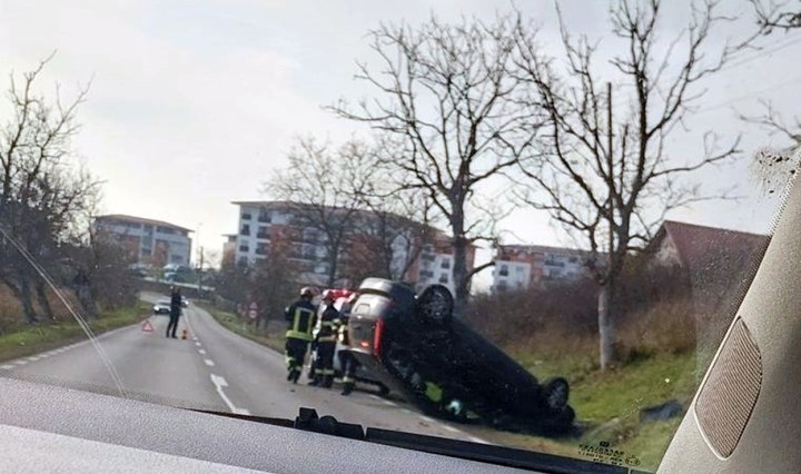 Accident grav în Apahida. O mașină a ajuns în gârlă