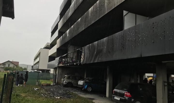 Un incendiu masiv a cuprins un bloc de locuințe din cartierul nou construit între localitățile Sânnicoară și Apahida! Pagubele sunt însemnate!