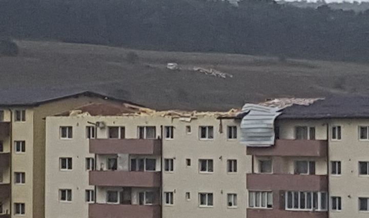 Furtuna extremă la Apahida. Acoperișul unor blocuri a fost smuls de vântul puternic. În Florești a fost prăpăd.