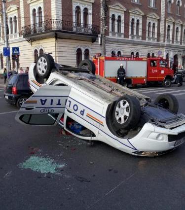 Mașina de poliție de la Postul din Apahida implicată într-un grav accident de circulație